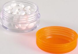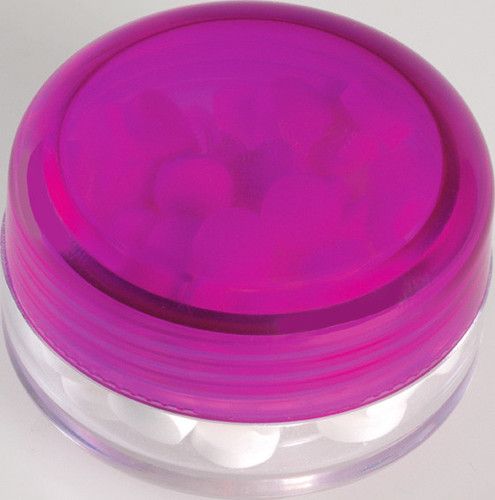 Süssigkeitendöschen aus Kunststoff mit farbigem Schraubdeckel, gefüllt mit ca. 12g zuckerfreiem Pfefferminz. In den Farben transparent, gelb, hellblau, dunkelblau, orange, rot, grün, magenta und schwarz erhältlich. Alle Preise zzgl. Kosten für die Werbeanbringung. Bei erwünschter Werbeanbringung auf dem bestellten Produkt, bitte einen Kommentar am Ende der Bestellung (Bestellschritt 5) abgeben. Wir setzen uns dann so schnell wie möglich mit Ihnen in Verbindung. Abnahme auch in geringeren Mengen möglich. Preise und Rabatte nach Absprache. Gewicht: 29g Größe: 4,5 x 2,6cm |