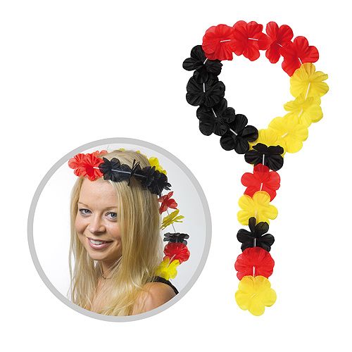 Tolles Accessoire für den Kopf. Stirnband mit doppellagigen Laolablumen in Deutschland-Farben.Mit elastischem Band und transparenten Kunststoffröhrchen als Zwischenstücke. Alle Preise zzgl. Kosten für die Werbeanbringung. Bei erwünschter Werbeanbringung auf dem bestellten Produkt, bitte einen Kommentar am Ende der Bestellung (Bestellschritt 5) abgeben. Wir setzen uns dann so schnell wie möglich mit Ihnen in Verbindung. Abnahme auch in geringeren Mengen möglich. Preise und Rabatte nach Absprache. Material: Textil/ Polyester |
