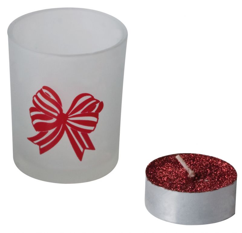 Weihnachtliches Kerzenset bestehend aus acht rot-glitzernden Teelichtern, dazu zwei passende Windlichter aus Milchglas mit Schleifendekor. Alles verpackt in einem roten Geschenkkarton mit Klarsichtdeckel. Gebunden ist der Karton mit einer roten Schleife an der sich eine Weihnachtskarte befindet. Alle Preise zzgl. Kosten für die Werbeanbringung. Bei erwünschter Werbeanbringung auf dem bestellten Produkt, bitte einen Kommentar am Ende der Bestellung (Bestellschritt 5) abgeben. Wir setzen uns dann so schnell wie möglich mit Ihnen in Verbindung. Abnahme auch in geringeren Mengen möglich. Preise und Rabatte nach Absprache. Werbefläche: 4 x 1.8cm Größe: 18.5 x 18 x 5cm |